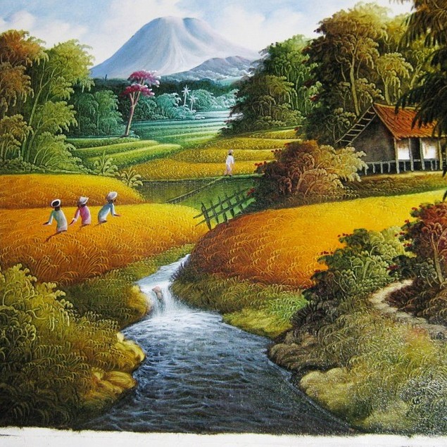Beli produk lukisan pemandangan sawah lukisan berkualitas dengan harga murah dari berbagai.